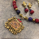 Large, vintage, ornate and colorful Kuchi pendant from Afghanistan. This adorable, large ethnic pendant is made from antique silver with glass cabochons, and is probably from around the mid-20th Century. Dangling from a red and green bead necklace and antique silver ornate beads, this necklace is sure to make heads turn, not once, not twice but several times!