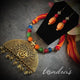 Large, vintage, ornate crescent shaped Kuchi pendants from Afghanistan. These adorable, large ethnic pendants are probably from around the mid-20th Century.....made of alpaca silver and cabochons and strung on blue, green and dark red beads makes it simply AWESOME !!!.