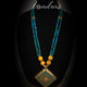 A beautiful two layered unique necklace with orange and green beads and asymmetrically placed pendants. Matching earrings included.
