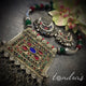 A beautiful vintage, ornate and colorful Kuchi pendant from Afghanistan. This adorable, medium sized ethnic pendant is made from alpaca silver with glass cabochons, and is probably from around the mid-20th Century. Dangling from a red, green and purple bead necklace, this necklace is sure to make heads turn.