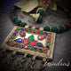 A beautiful vintage, ornate and colorful Kuchi pendant from Afghanistan. This adorable, medium sized ethnic pendant is made from alpaca silver with glass cabochons, and is probably from around the mid-20th Century. Dangling from a red, green and purple bead necklace, this necklace is sure to make heads turn.