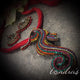 An extraordinarily beautiful rustic brass Tibetan handcrafted mosaic coral turquoise inlaid large focal pendant hanging from a green n orange beaded necklace. Length is adjustable.