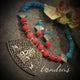 A large antique silver pendant strung on different blue beads necklace! Length is adjustable.