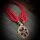 Dark red glass beaded necklace with 2 round copper charms strung asymmetrically to give it a classy look.