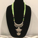 A square oxidized silver pendant with a dark purple stone and a beautiful big dangling oxidized silver diamond shaped bead, strung on rondelle baby pink and irregular purple beads.
