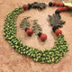 This one of a kind necklace is just waiting for you! Big Prussian blue roundish beads strung with turquoise teardrop shaped beads and 2 antique silver "Ganesha on a leaf" pendants just gives this necklace its outstanding contemporary look.