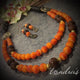 An extraordinarily beautiful brass n copper pendant hanging from a tricolor beaded necklace.