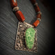 Green glass beaded necklace with a 2.5" silver Indian style Ganesha pendant strung asymmetrically to give it a classy look.