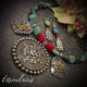 A large antique silver Ganesha pendant strung on a baby pink opaque charlottes Czech glass seed bead necklace! The blue designed beads adds a subtle beauty to the necklace.