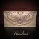 These fabric bags are made of "Tussar" (Indian silk) with Kantha embroidery and have a subtle sheen to it. Sized perfectly to fit your phone, car keys, and lipstick, all to be carried fashionably to your rocking party!