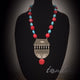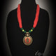 An antique silver 2.2" handmade designer ethnic and tribal pendant of Ganesh strung with red-orange and black beads.