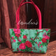 These fabric bags are made of "Dupian" (Indian silk) with embroidery and have a subtle sheen to it. Sized perfectly to fit your phone, car keys, and lipstick, all to be carried fashionably to your rocking party!