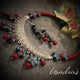 An antique bronze n silver mix pendant dangling from a coral n black seed bead necklace.