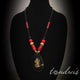 A beautiful vintage, ornate and colorful Kuchi pendant from Afghanistan. This adorable, medium sized ethnic pendant is made from alpaca silver with glass cabochons, and is probably from around the mid-20th Century. Dangling from a red, green and purple bead necklace, this necklace is sure to make heads turn.