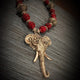 Green glass beaded necklace with a beautiful greenish bronze sea horse charm strung asymmetrically to give it a classy look.