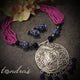 Large, vintage, ornate and colorful Kuchi pendant from Afghanistan. This adorable, large ethnic pendant is made from antique silver with glass cabochons, and is probably from around the mid-20th Century. Dangling from a red and green bead necklace and antique silver ornate beads, this necklace is sure to make heads turn, not once, not twice but several times!