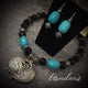 An antique brass medallion with a tribal green pendant. Strung on real gemstone green necklace. Matching earrings included. Very elegant and rich look.