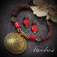 A beautiful antique golden Durga pendant strung with just exquisitely beautiful reddish-green multicolor tone beads interspersed with antique bronze beads. Wear with Western outfit too!