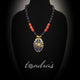 A beautiful red/green antique bronze Tibetan pendant strung with beautiful green and red beads. Wear with Western outfit too!