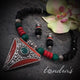 A beautiful antique silver pendant strung with red coral and black multifaceted beads interspersed with antique silver beads. Wear with Western outfit too!