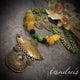 An antique silver elephant trunk pendant hanging from a blue and turquoise beaded necklace.