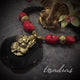 An antique brass medallion with a tribal violet pendant. Strung on violet double strand necklace. Matching earrings included.