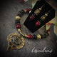 A really big purple and orange Tibetan pendant strung on seed beads and real coral and antique gold beads.