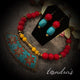 A beautiful large antique bronze pendant strung orange gemstone beads and ghungroo bells. Unique piece !