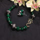 Green glass beaded necklace with a 2.5" silver Indian style Ganesha pendant strung asymmetrically to give it a classy look.