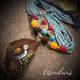 Tondra's once again brings you a unique n elegant surprise!Hand painted on a tree bark, a beautiful wooden pendant of baby Lord Ganesh on Ma Durga's lap, strung on red green yellow beaded necklace.